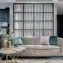 Even the quietest details speak: a glass coffee table that nearly disappears, an oversized mirror to multiply light, and abstract blue wall art that adds gentle rhythm. Nothing shouts, yet everything resonates.